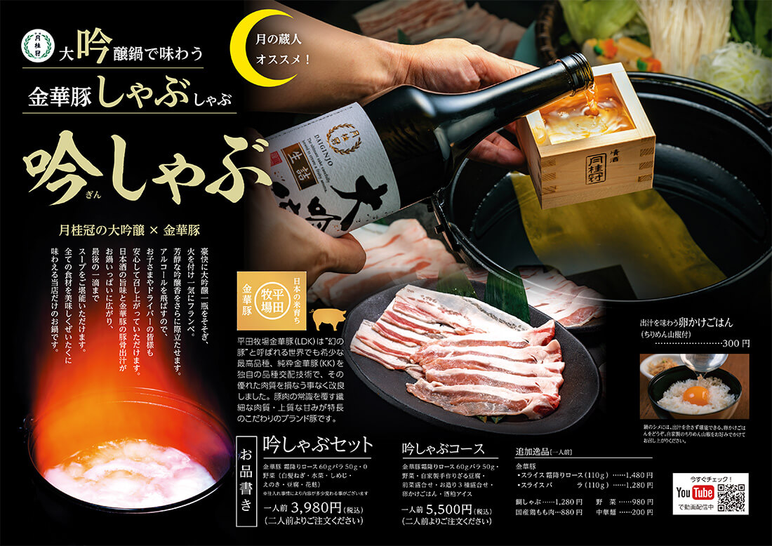 日本酒の旨味と金華豚の豚骨出汁がお鍋いっぱいに広がり、最後の一滴までスープをご堪能いただけます。全ての食材を美味しくぜいたくに味わえる当店だけのお鍋です。